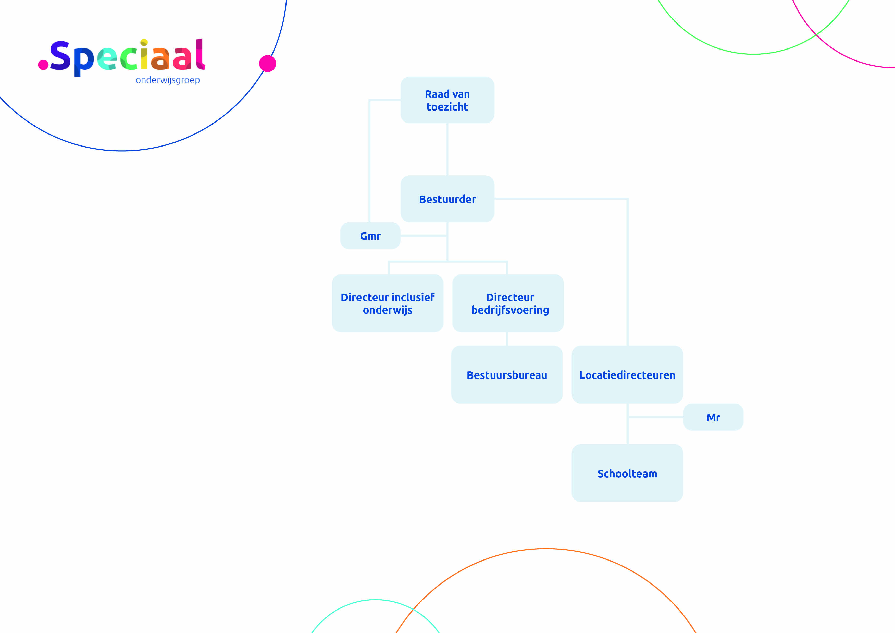 Punt Speciaal onderwijsgroep heeft één bestuurder. Bas Wesseldijk vervult deze rol. Hij wordt ondersteund door het bestuursbureau.